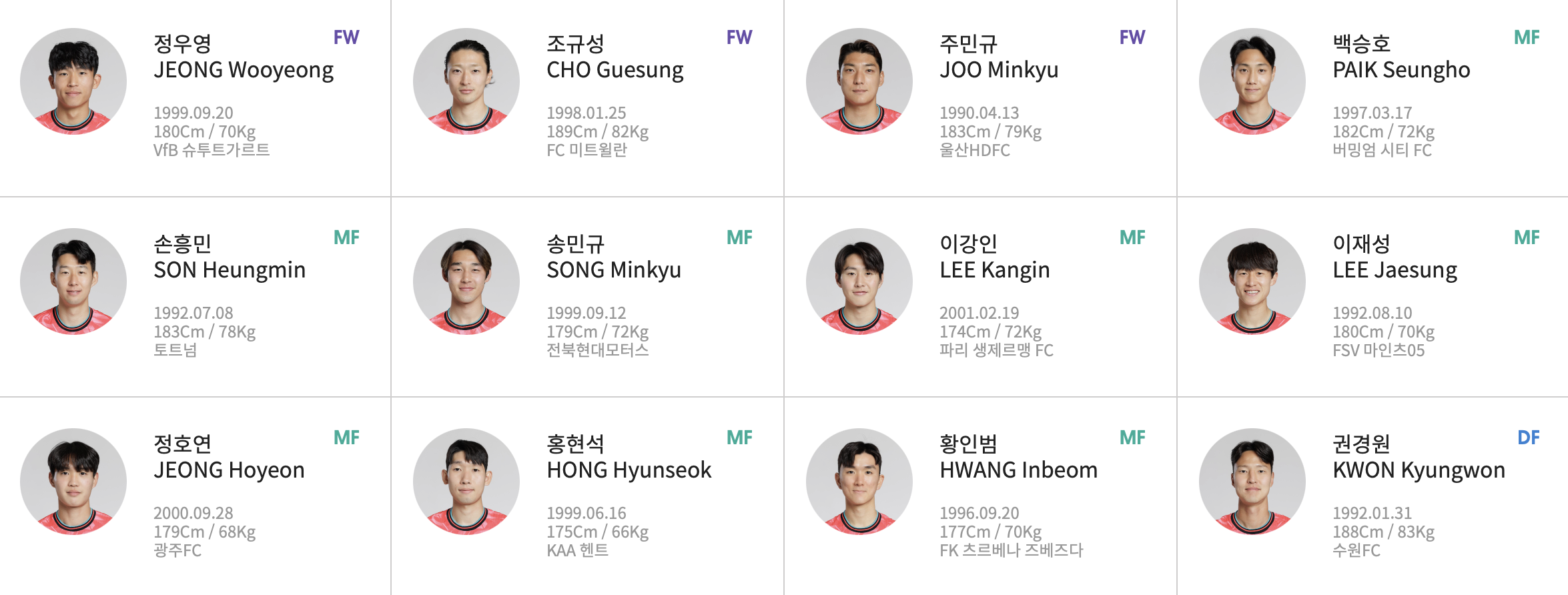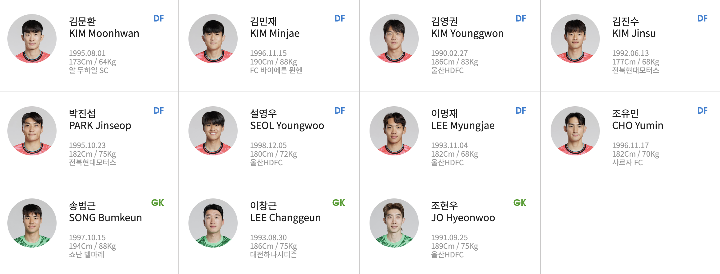 대한민국 국가 대표팀입니다.